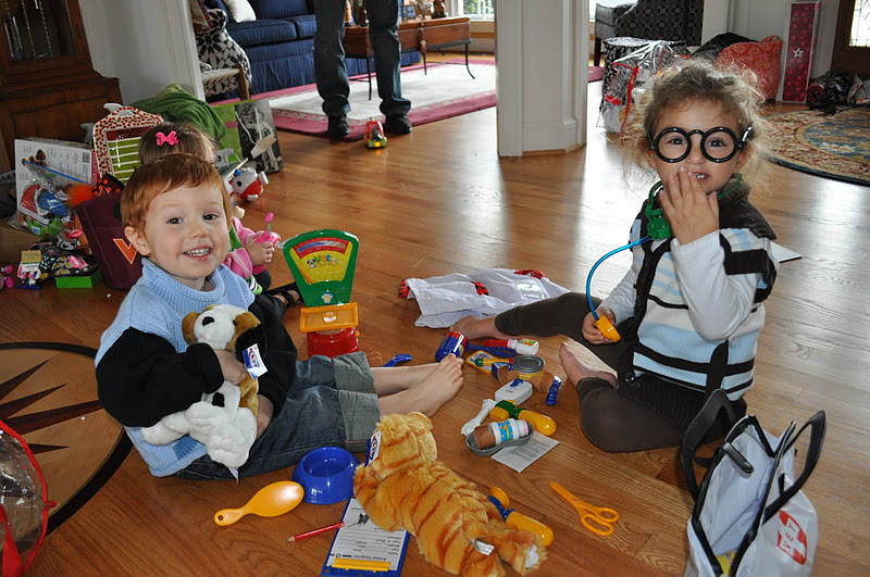 Playing with their new toys! Evan got a glow doodle, tons of games, legos, color wonder, puzzles! Ainsley got a Hello kitty lunch box, a favorite pillow (I got one of my mama clark when I was born and ALWAYS slept with it...yep even through college), art set, instruments